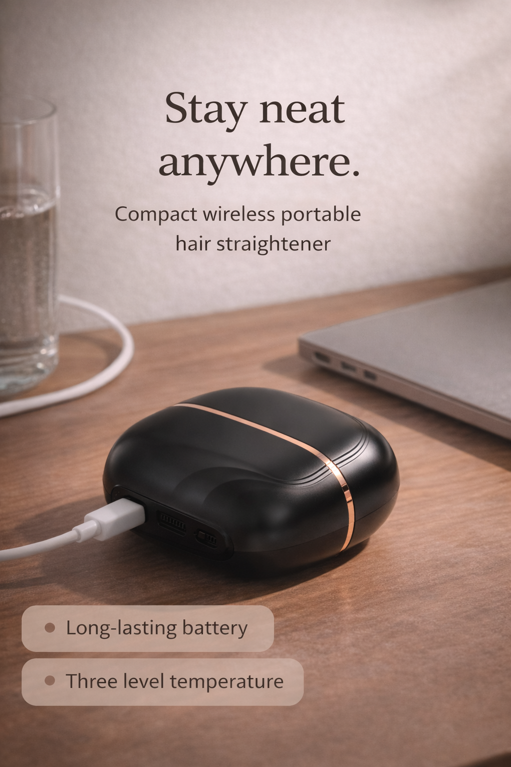 This mini cordless hair straightener is designed for quick, effortless styling at home or on the go. Suitable for both wet and dry hair, it heats up in just 3–5 minutes and features three adjustable temperature settings to match different hair needs.